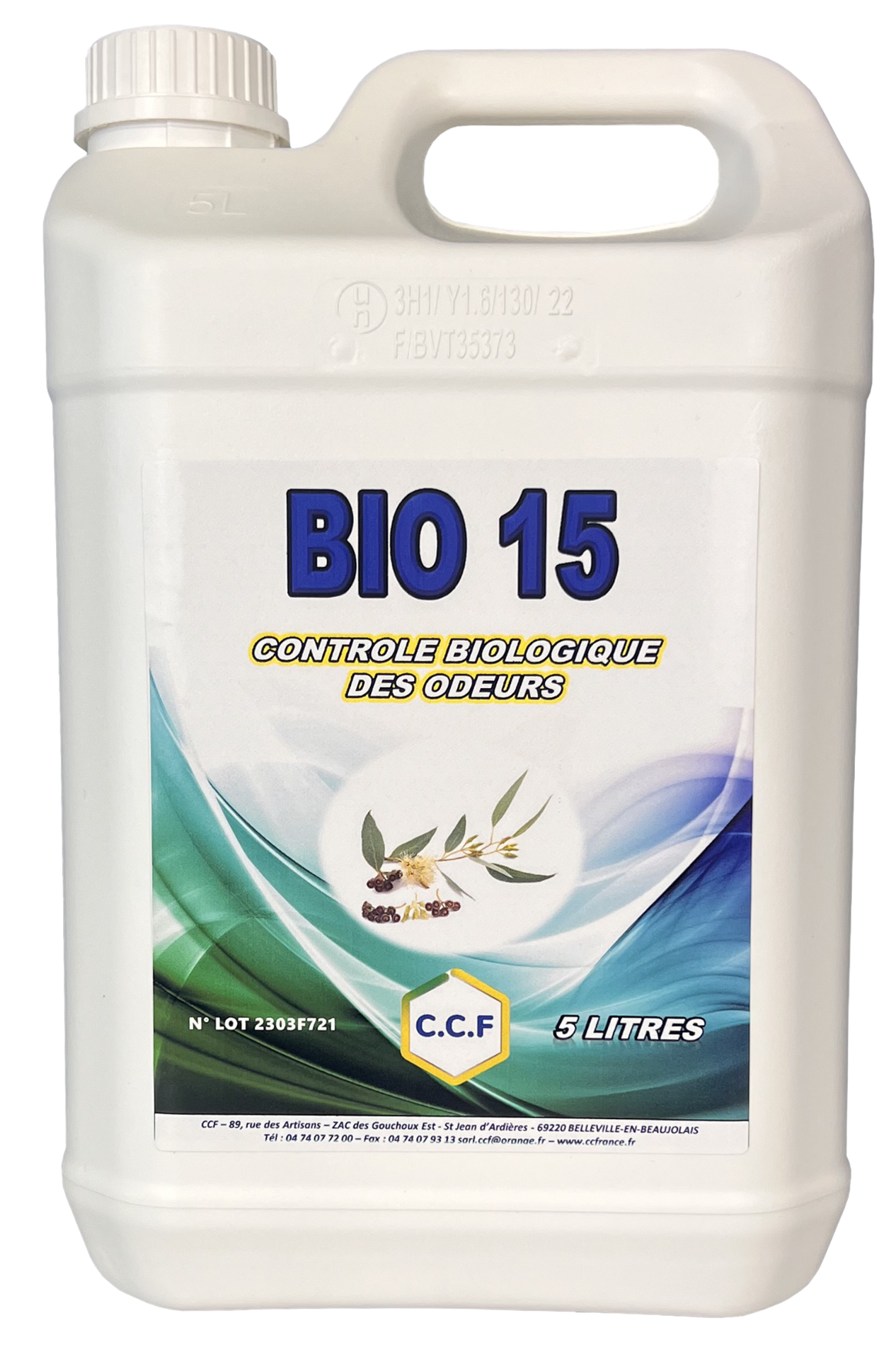 BIO 15 permet de contrôler les odeurs grâce à son action biologique détruisant la cause des odeurs. Action immédiate du produit grâce à sa formulation parfumée. Ne contient pas de soude caustique. Peut être manipulé sans danger.