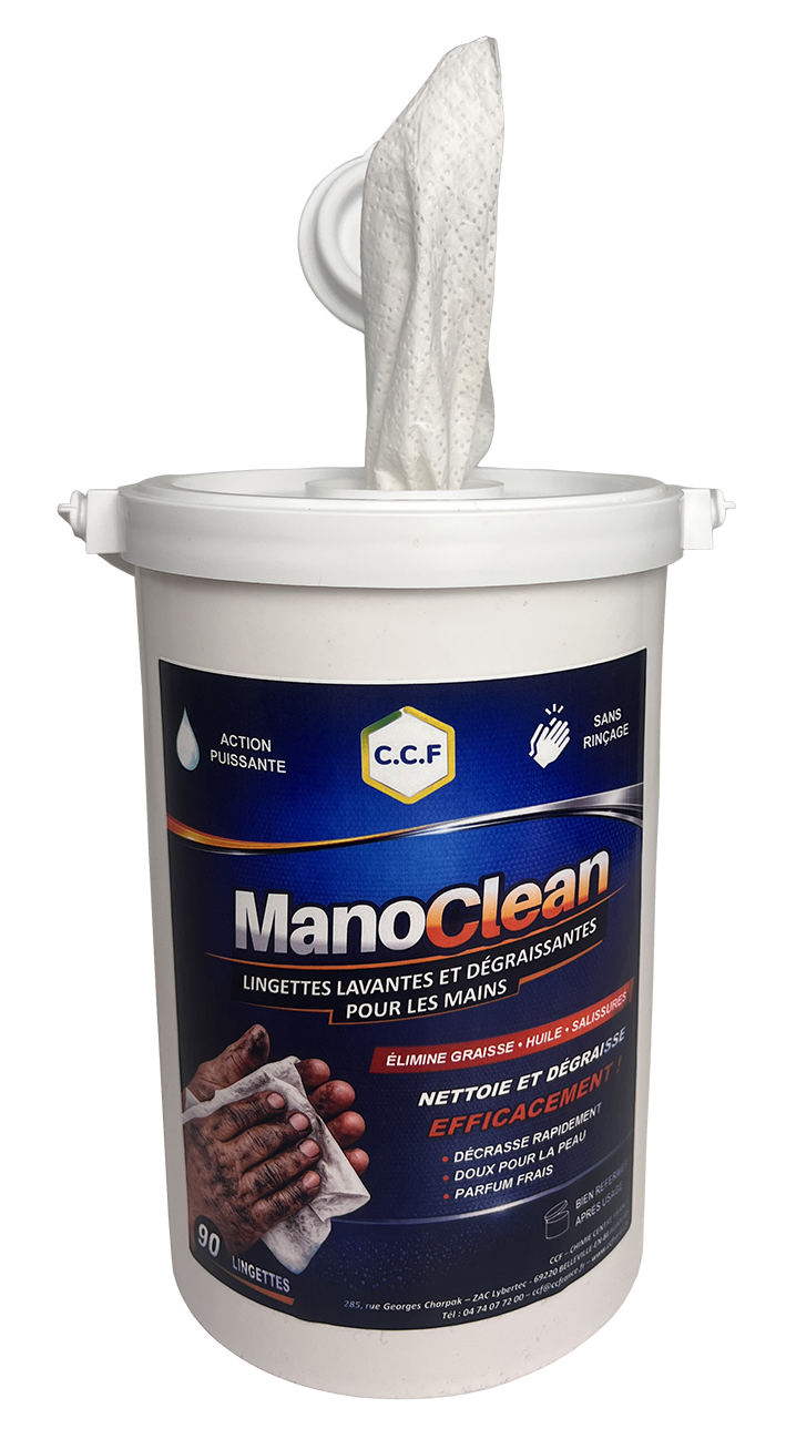 Imprégnée d'une solution nettoyante très puissante, les lingettes non tissées MANOCLEAN désincrustent et dissolvent la saleté, sans la redéposer sur les mains.