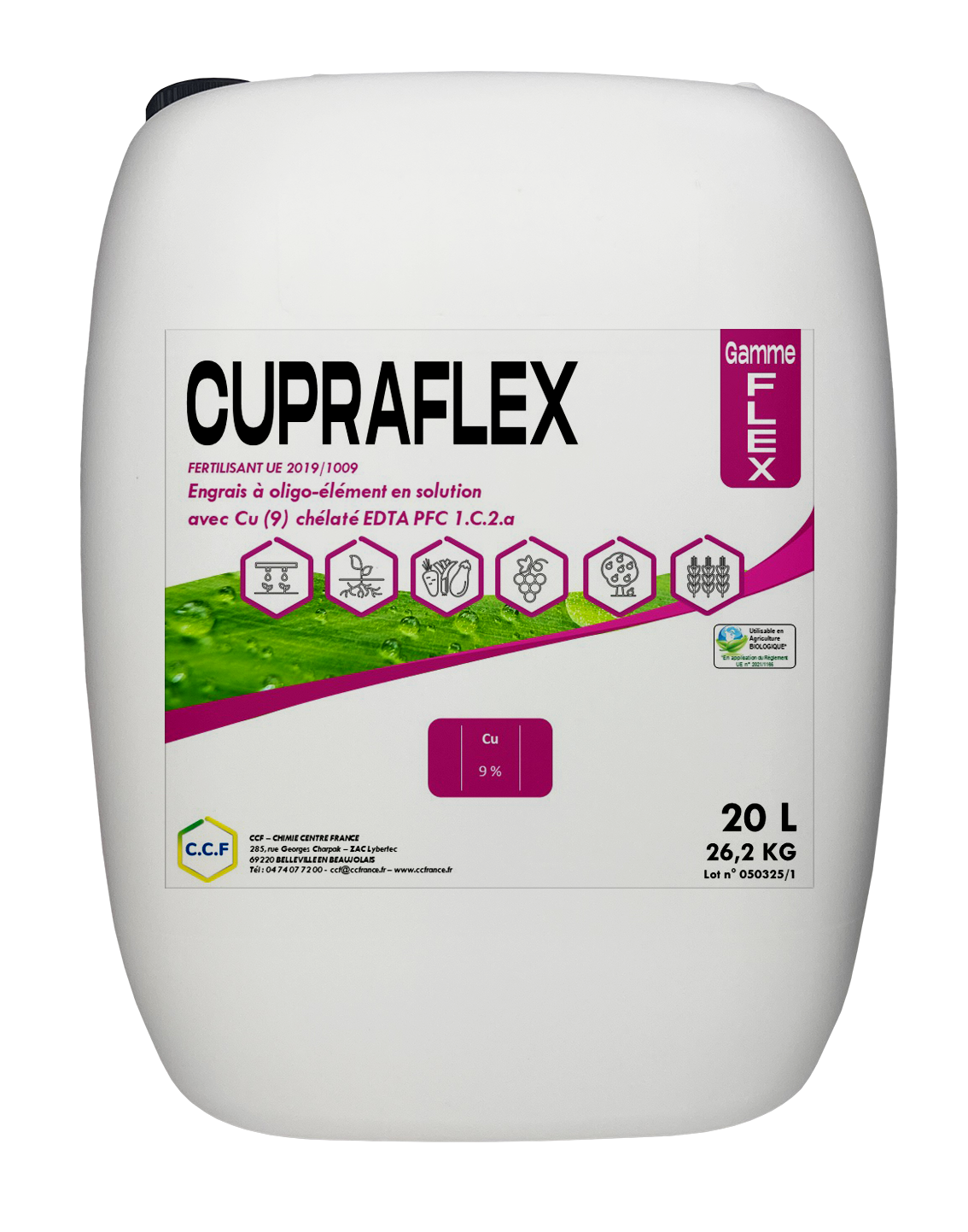 CUPRAFLEX Engrais foliaire liquide permettant d’apporter du cuivre sous forme chélatée EDTA