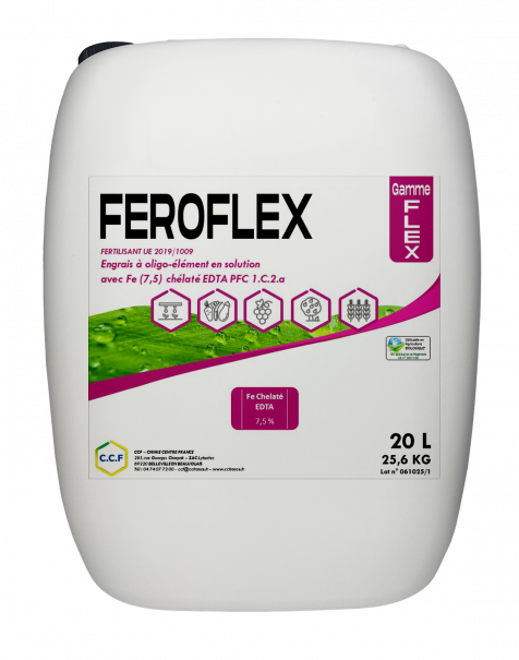 FEROFLEX Engrais foliaire liquide permettant d’apporter du fer sous forme chélatée EDTA.