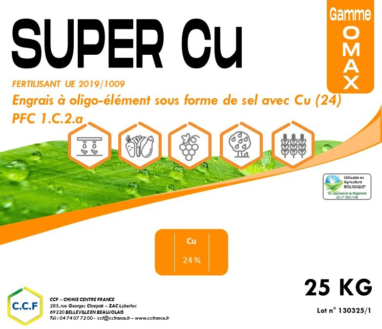 Recommandations : Eviter les mélanges de SUPER CU avec des produits à pH basique. Pour toute nouvelle bouillie avec SUPER CU, il est préférable de faire un essai de compatibilité au préalable.