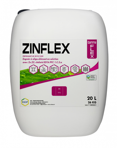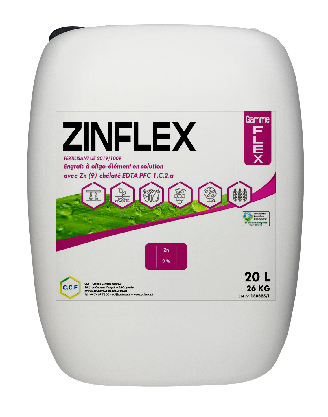 ZINFLEX Engrais foliaire liquide permettant d’apporter du zinc sous forme chélatée EDTA